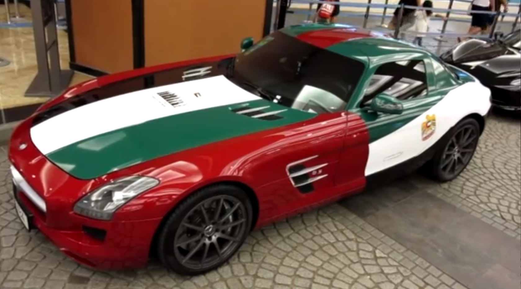 On Sunday, the UAE celebrated its 41st anniversary. In response to the event, the people of the UAE celebrated their independence day with lavish displays of personal wealth. After all, they have the 7th highest per capita income in the world. Supercars in the UAE are a dime a dozen, and the Mercedes SLS AMG is no exception, at least until we saw this one. Wrapped in the UAE’s national flag, we are certain this one of a kind SLS AMG will gain attention as it drives through their streets.