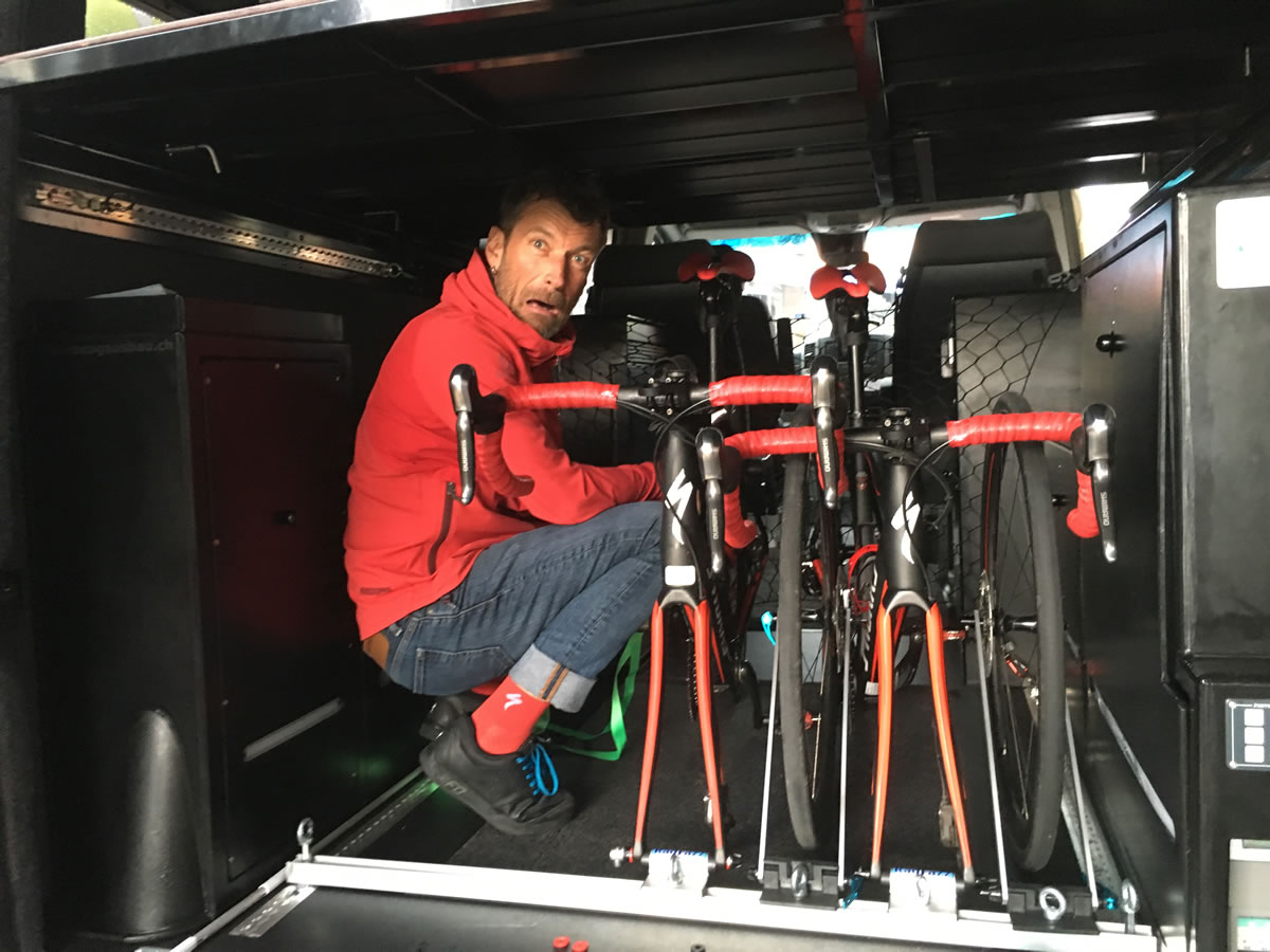 Bikers ride their Specialized S-Works nearly 5,000 miles across Europe for disadvantaged children. Part of the tour a, Mercedes-Benz Sprinter as support vehicle