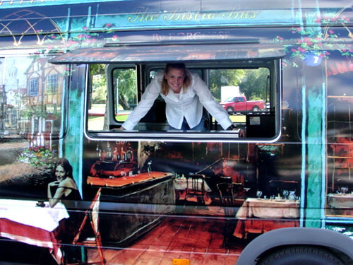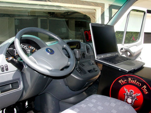 The Bistro Bus, a custom‐built Sprinter food truck customized by Kitchens on Wheels, is on display in the Mercedes‐Benz exhibit at the 2013 Chicago Auto Show. Kitchens on Wheels was just named an approved food truck upfitter for the Sprinter by Daimler Vans.