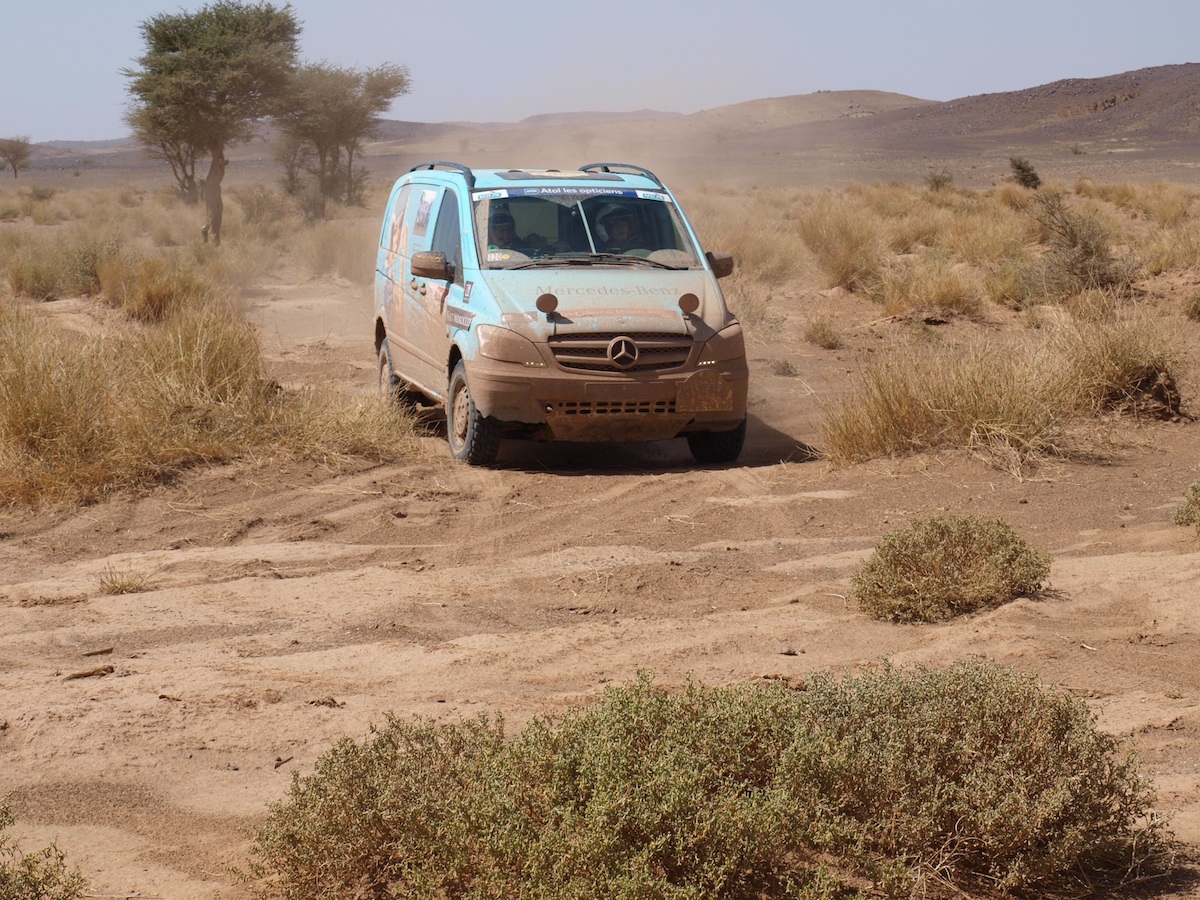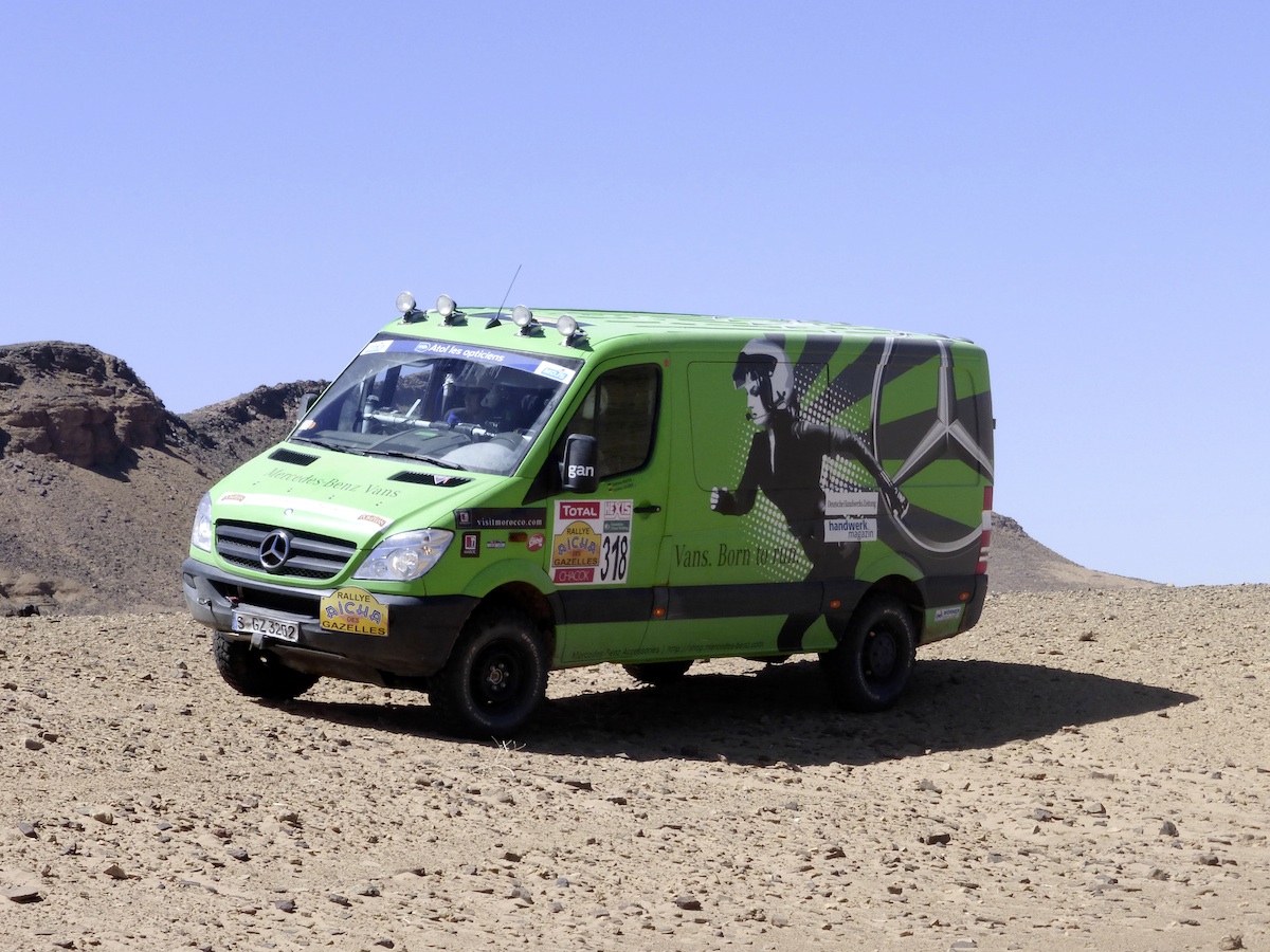 Both the two Mercedes-Benz Vito 4×4 models and the Sprinter driven by the skilled trades team were all standard production vehicles. The all-wheel-drive models, which were modified only slightly for the desert race, finished the rally without any problems to speak of and displayed an outstanding traction, in spite of the extremely demanding conditions they had to face. The fuel-efficient four-cylinder diesel engine (OM 651) introduced in the Vito in 2010 was very impressive in terms of its driving performance.