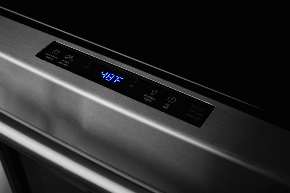 Functionally, the Electrolux Beverage Center has everything you could want in a fridge. There’s a Perfect Set digital temperature control, allowing simple temperature settings anywhere from 35 to 45 degrees Fahrenheit. There are three Luxury-Light LED display options – off, low and high – which not only making finding a drink easy in low light, it also looks great and serves as a design focal point in your kitchen. And what may be the best functionality feature: the top two shelves both boast Luxury-Glide functionality, allowing you to fully extend each for easy access to your favorite drink or food without the need to shuffle items around.