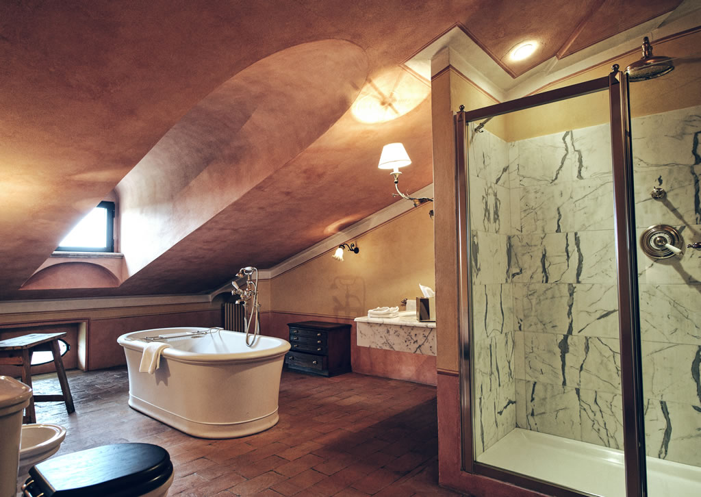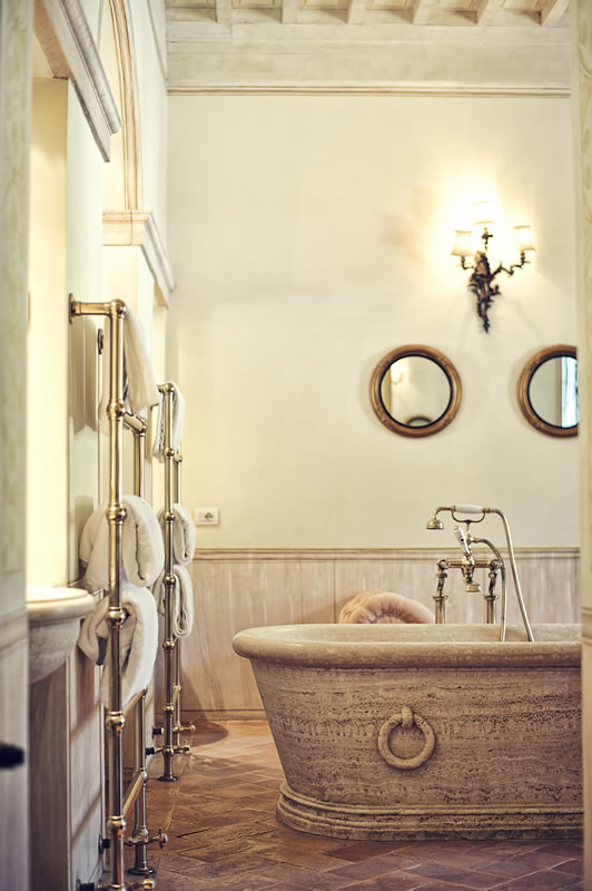 Having the Palazzo to ourselves, we could have chosen any of the other seven suites, and all were magnificent. Every suite is huge, all boast soaring ceilings, and each notes a completely distinct décor and color scheme. My main recommendation is to pick a room with views of the countryside, as it’s simply magical to wake up and watch the fog sweep across the hills.