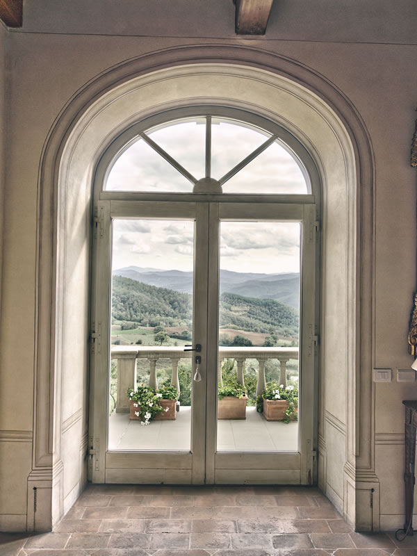 A view of the Umbrian landscape as seen from Palazzo Terranova’s balcony