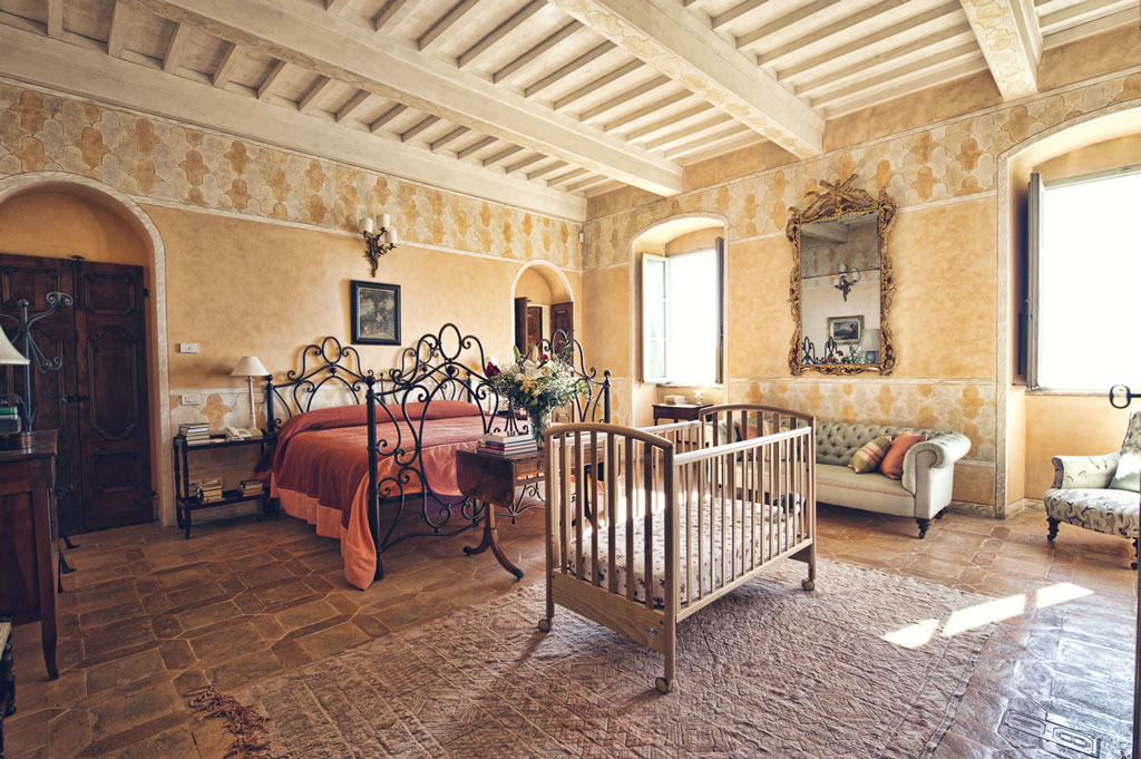In addition to the main home, it’s also important to note that Palazzo Terranova boasts two additional homes – one on its grounds, and one next door. The larger of the two is a restored country house named Colonnata, which is really a magnificent home in its own right. Available for rental independent or with the Palazzo, Colonnata is a more causal alternative to the formal, luxurious feel of the Palazzo, and boasts 4 bedrooms with adjoining bathrooms, a kitchen, living and dining areas. There’s also a pool and outdoor dining area that allows to you enjoy the stunning Umbrian landscape.