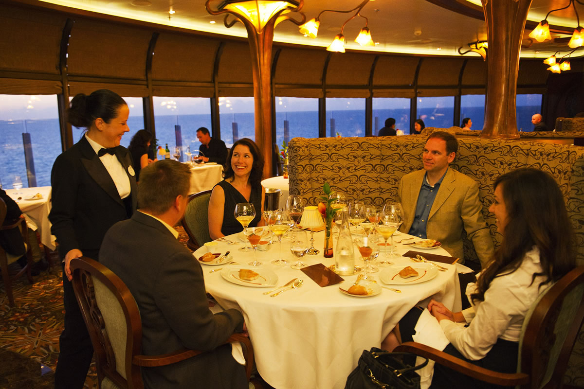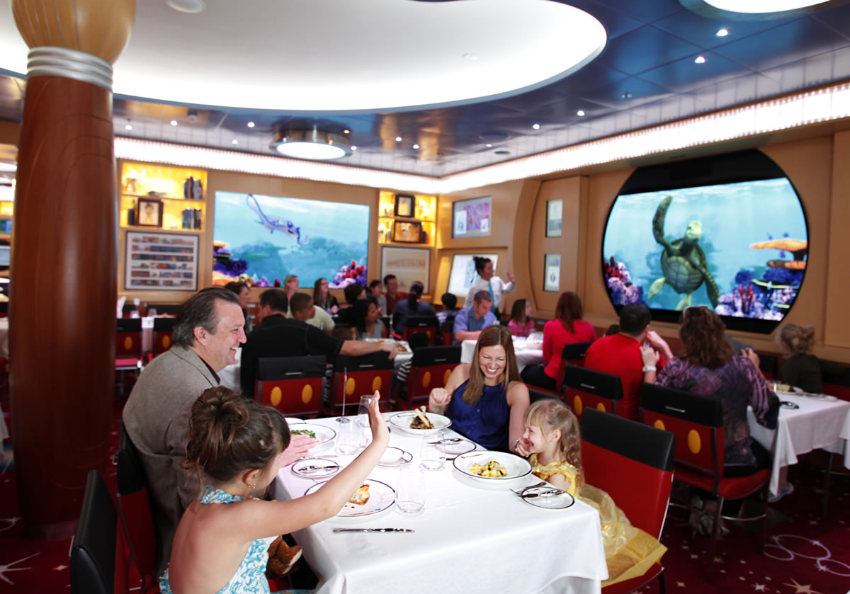 To make the dining process aboard the Dream as streamlined as possible, Disney has implemented what’s called a rotational dining system. When booking the cruise, you have the option to select either an early or late dinner seating, and you’re then assigned to a different restaurant each night. It’s a system that works beautifully, because you never have to wait for seating, your wait staff rotates with you (so you get to know them on a friendly, first-name basis), and dining times are set up to correspond with theater times (so you can always take in a show before or after dinner without fear of scheduling conflicts).