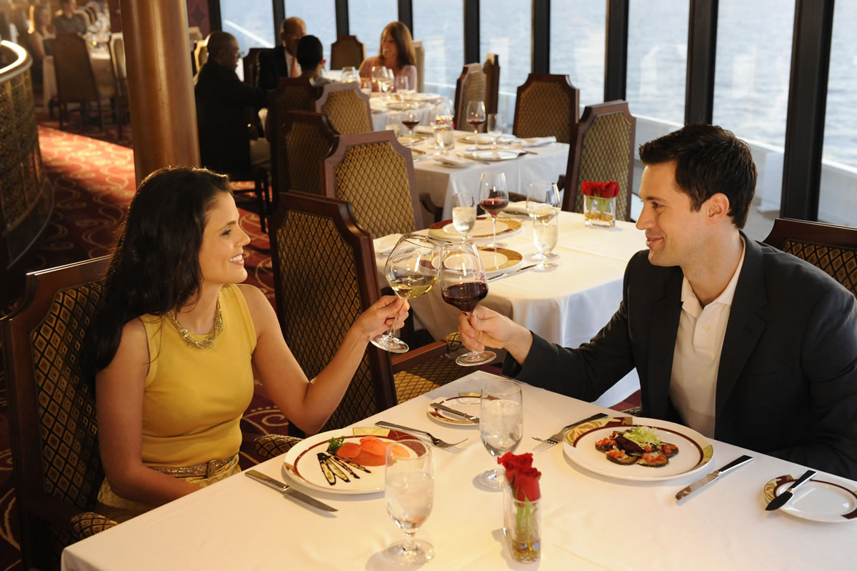 If you’re looking for a romantic night aboard the Dream, Remy has to be at the top of your dining list. The decor of is elegantly subdued in an Art Nouveau style, a perfect compliment to the sweeping sunset sea views you’ll experience while dining. The menu is equally intimate, with complex preparations that are simply sensational. Coastal turbot with Vin Jaune and gnocchi; lobster with vanilla, bisque and lobster roe foam; young pigeon pie with foie gras, spinach, and tomato; and veal tenderloin sweetbreads and braised shank with marble potatoes were some of the highlights. Paired with your dining selections, a wine pairing option is available, or choose from an extensive wine list comprised of more than 900 bottles of both old world and new world selections.