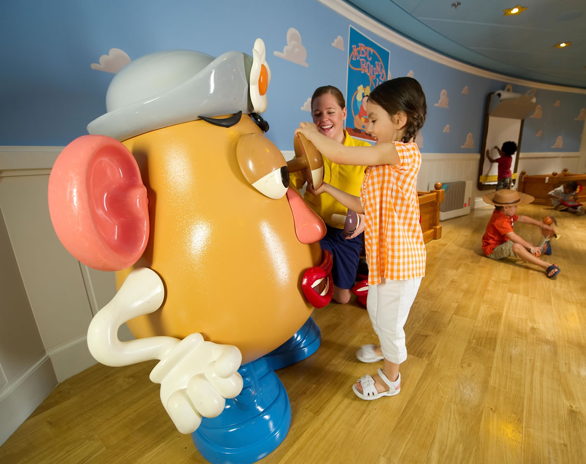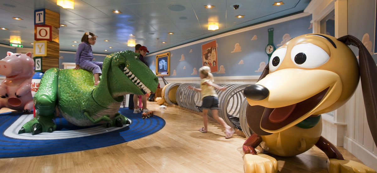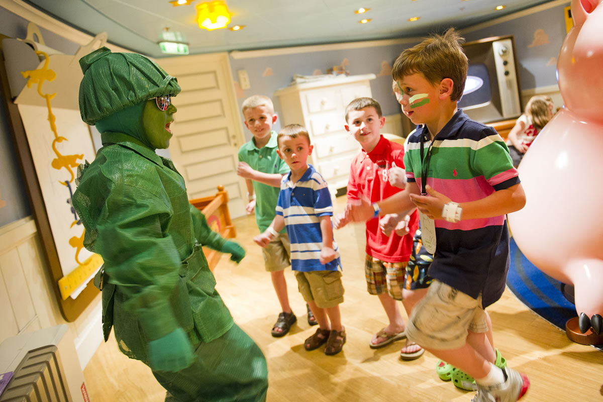 The heart of kids’ activities is built around youth clubs – a series of destinations exclusive to kids, broken up into age groups. For children ages 3 months to 3 years, there’s the “It’s a Small World Nursery”, a colorful space named after the famous Disney attraction of the same name. It’s here that my two kids went during select portions of our cruise, and they absolutely loved it. Mickey and the gang even stopped by while they were there, which made my son’s day, to say the least.